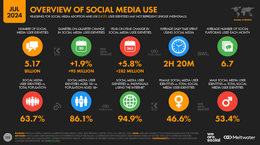 According to Oberlo, as of 2024, there are 5.17 billion social media users worldwide, a 5.5% annual increase. Of course, social media consumption cries are one of the most popular activities that internet users perform, and the usage of the platform is increasing every day.