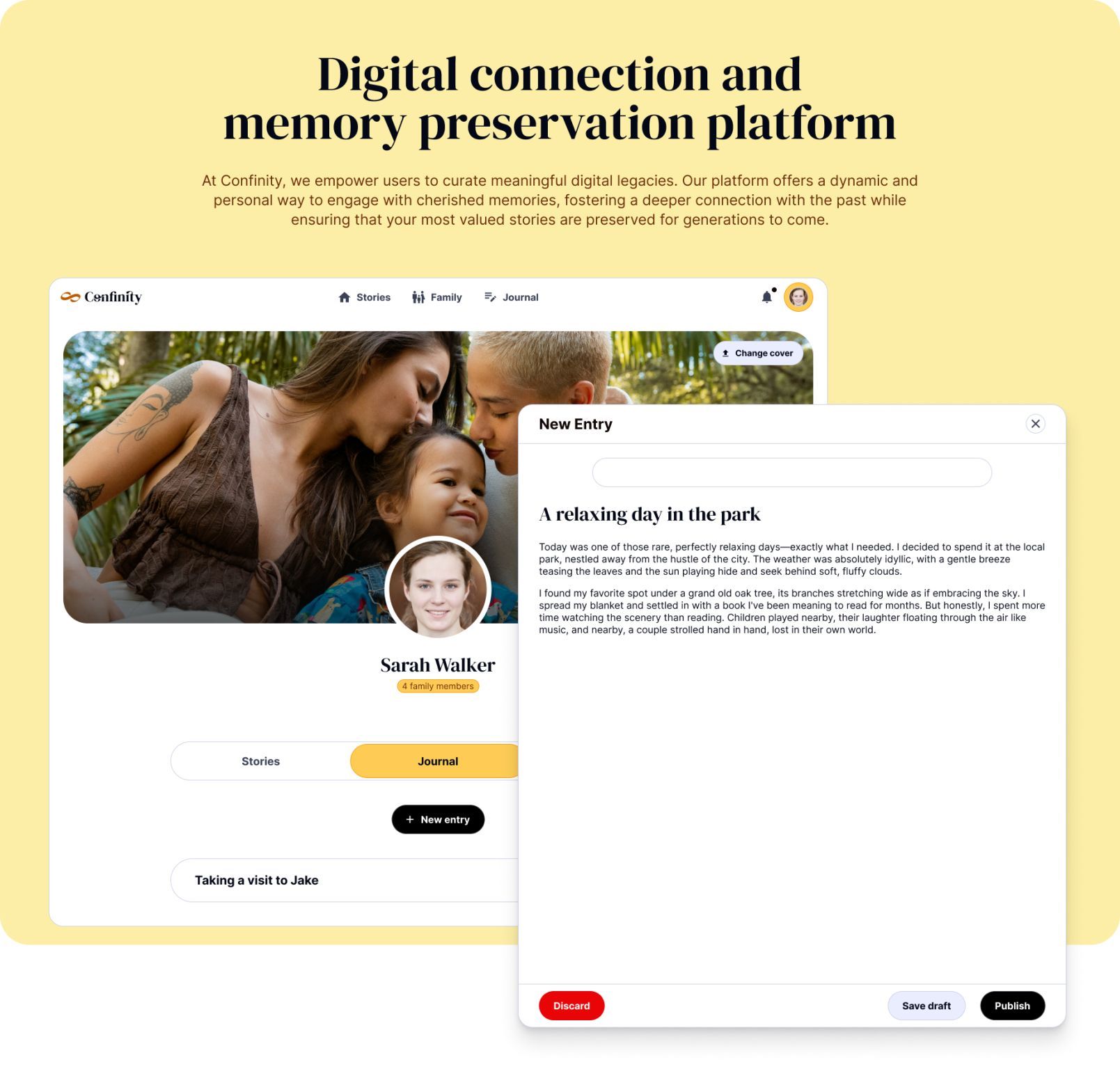 Confinity preserves memories and connects generations through a secure, intelligent-driven platform focused on storytelling and end-of-life wishes. Users can organize, store, and enhance personal and family memories, ensuring a lasting legacy.